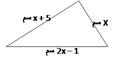 الإجابة: محيط المثلث هو حاصل جمع أضلاعه الثلاثة. معطى أن المحيط 24. المعادلة المناسبة: x + (x+5) + (2x-1) = 24 الحل: 4x + 4 =