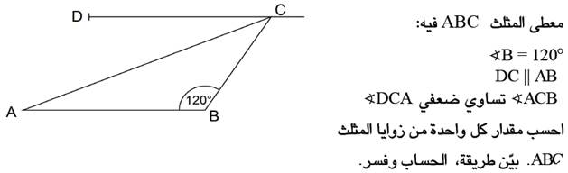 معطى مستطيل ABCD وبداخله مثلث rEDC استنادا للمعطيات التي في الرسم احسب قيمة الزاوية Ð ECB ? أ) 100 ب) 180 ج) 80 د) 50 |