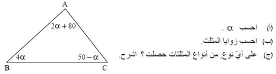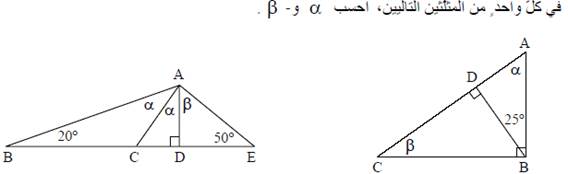 نتمعن في المثلث ABC: في هذا المثلث توجد زاويتان: